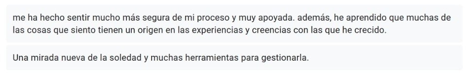 *Testimonios sacados de las evaluaciones continuas que llevo a cabo durante los procesos de acompañamiento individual y grupal que llevo a cabo